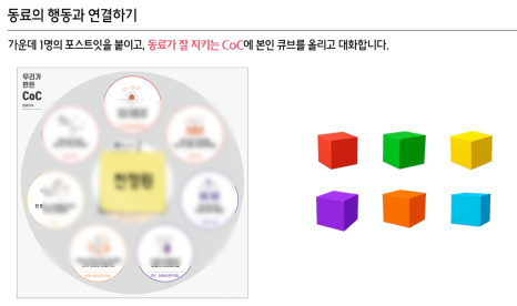 조직CoC 상세설명 뮤인물 및 보드판과 큐브를 활용한 동료 인정활동